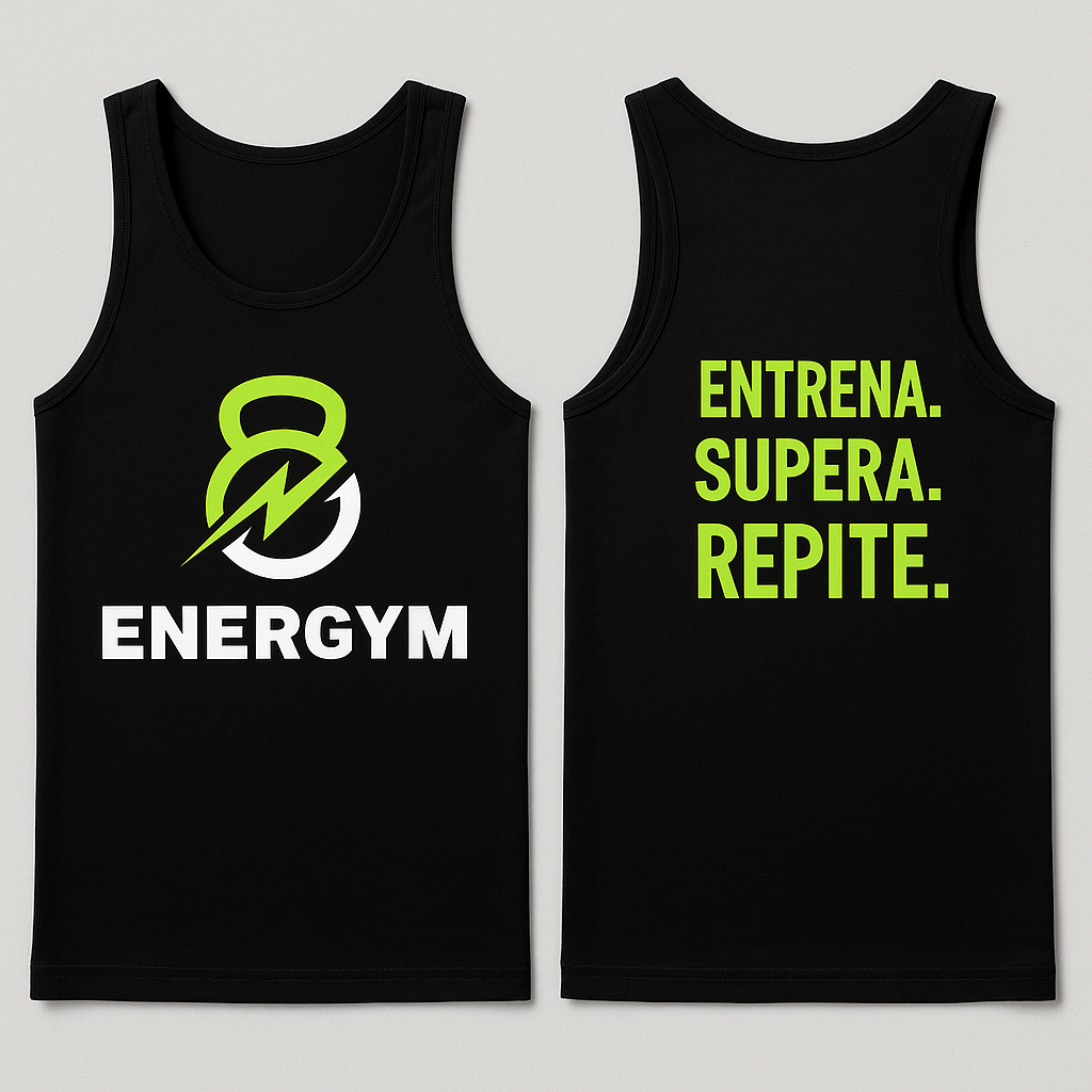 Su diseño deportivo, con tirantes anchos y ajuste cómodo, la convierte en una prenda ideal para entrenamientos de fuerza, cardio, funcional o clases dirigidas. Incluye el logo oficial ENERGYM, disponible en color negro, blanco o gris, para que entrenes con estilo y representes tu gimnasio dentro y fuera de la sala.